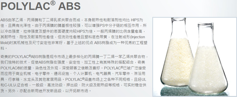 臺灣奇美POLYLAC系列ABS塑膠原料應用
