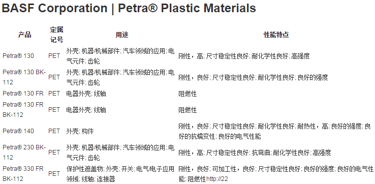 >> 德國巴斯夫PETRA品牌系列PET塑膠原料