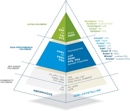 擁有許多不同的高性能和超高性能塑料家族的Solvay Advanced Polymers可以使您的選擇更廣闊。更多的材料選擇可以更加完美地滿足您的應用需求。為開發出精明而新穎的設計提供更多支持。我們可提供成百上千種不同的產品配方-包括改性和增強樹脂-因此,您可以根據需要確認一個解決方法,以滿足您的準確要求。